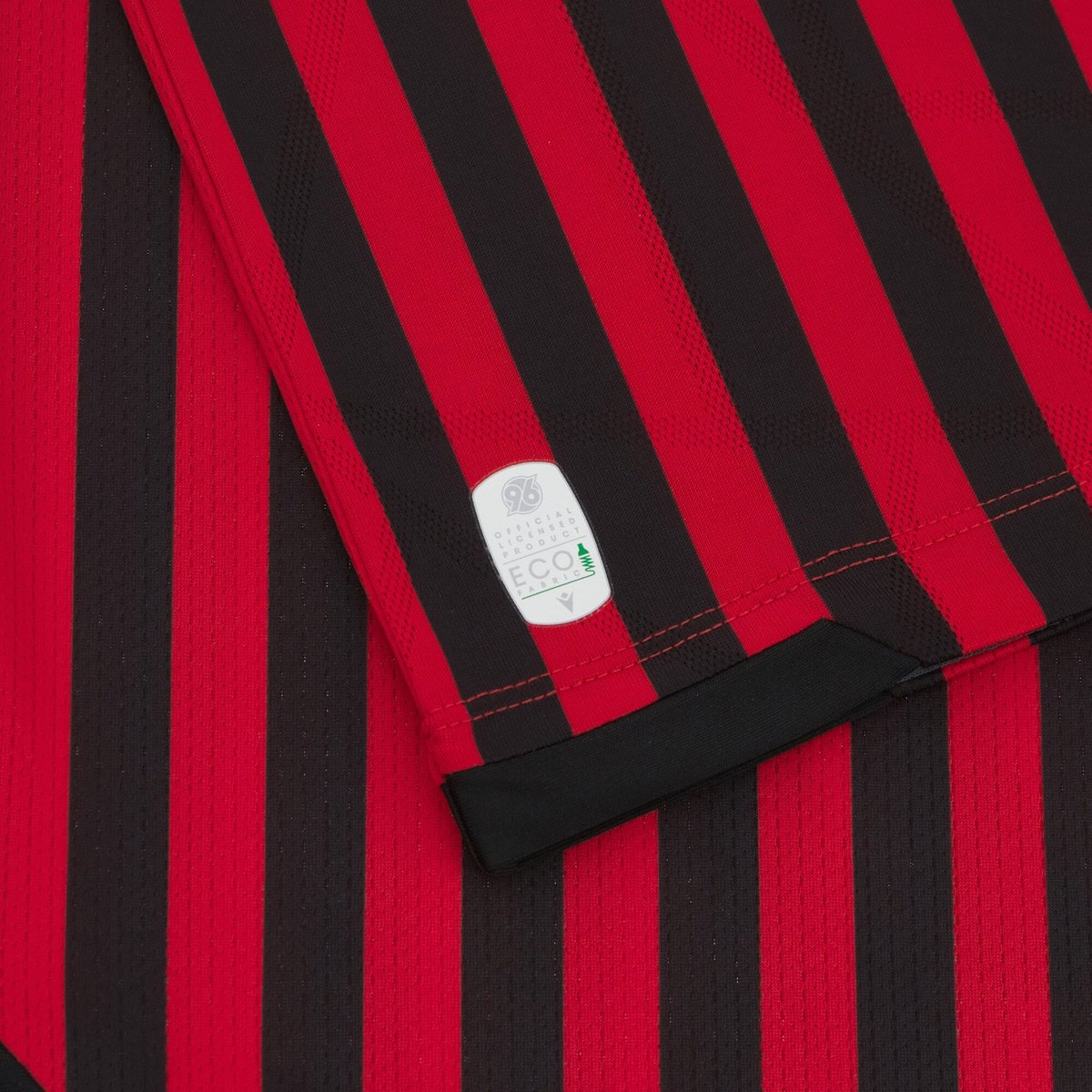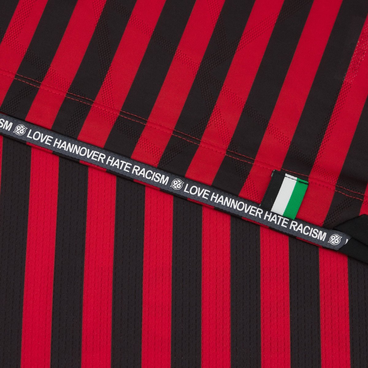 Das Hannover 96 2025/26 Heimtrikot kommt mit einer roten Basis und feinen schwarzen Längsstreifen ein Vereinsklassiker modern interpretiert. Der koreanische Kragen und die schwarzen Ärmelbündchen sorgen für stimmige Linien und eine klare Optik. Auf der Rückseite des Kragens steht 'NIEMALS ALLEIN' als Symbol für die enge Verbindung zwischen Team und Fans, während am unteren Innenrand der Schriftzug 'LOVE HANNOVER HATE RACISM' für Inklusion steht. Das Trikot besteht aus EcoKnit Effect mit Einsätzen aus Eco Micromesh und bietet Leistung und Komfort bei jeder Spielphase.